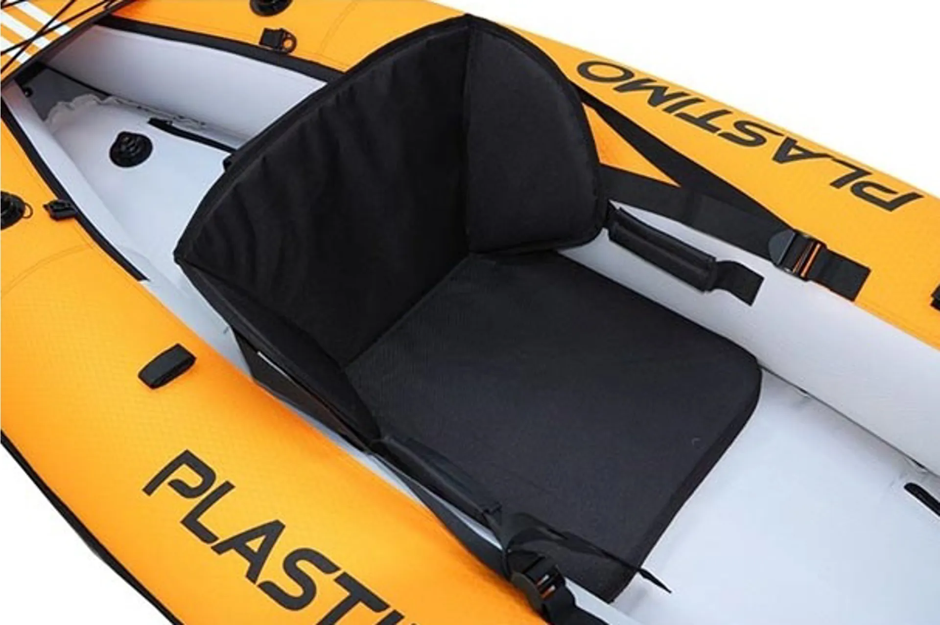 Recreational v-shaped single kayak for sea or river use. The kayak has a removable seat with a high backrest in foam for optimal back support. The kit also includes a Plastimo lightweight kayak paddle and 4-litre foot pump.