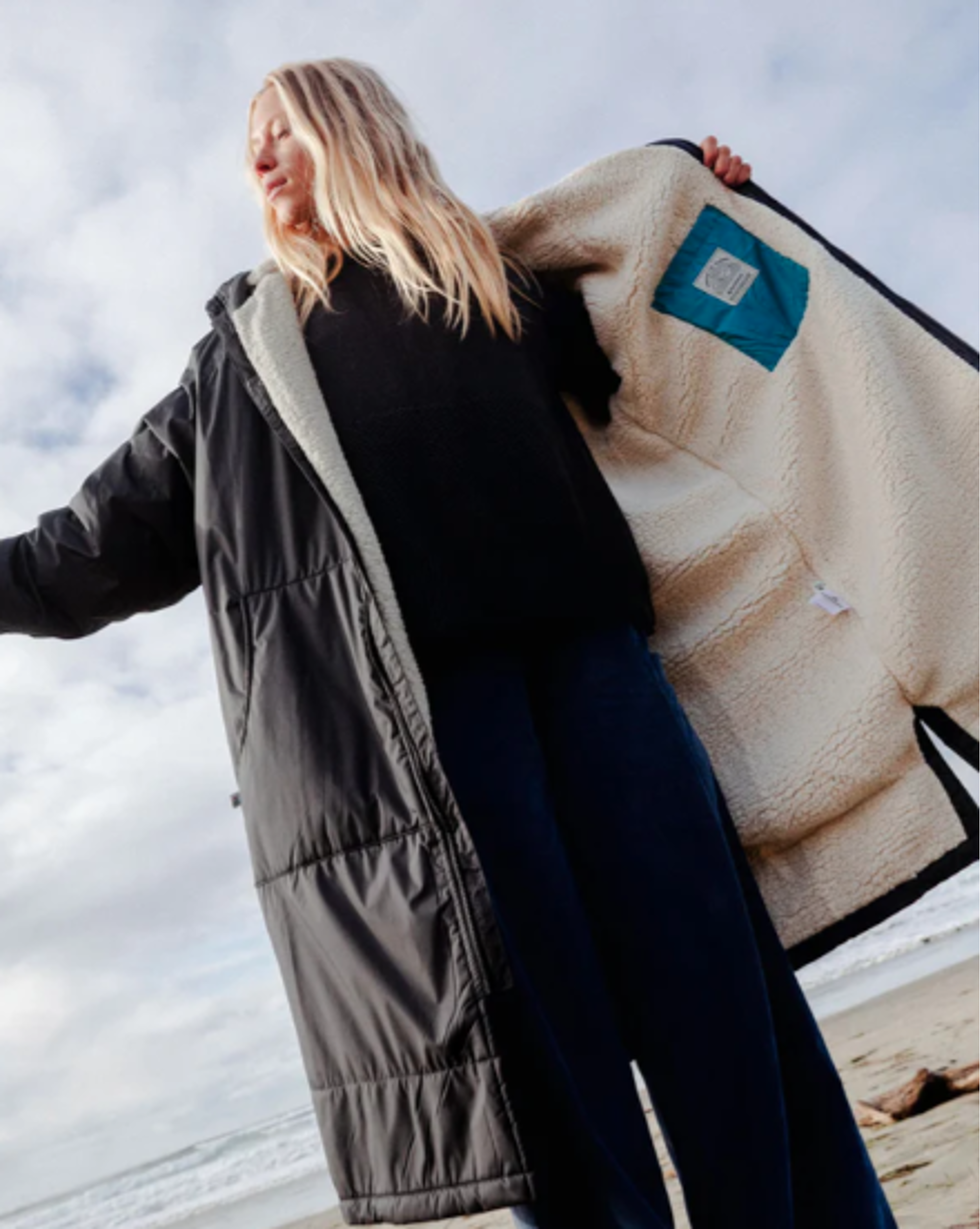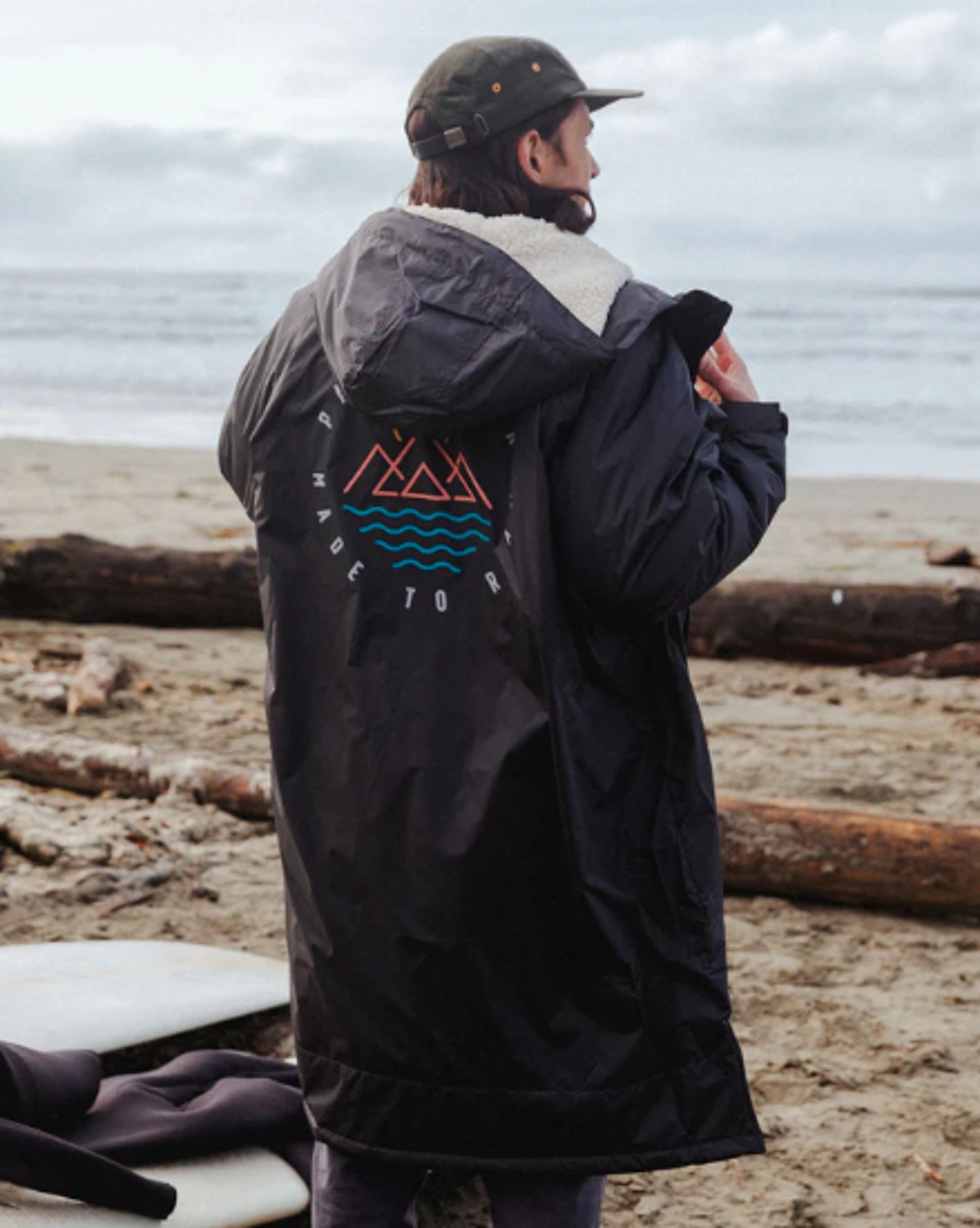 The Escapism is our changing robe with a super soft, cosy and snug sherpa fleece lining. Get changed anywhere in privacy and comfort, dry off, stay warm and keep the elements at bay. Built with 100% recycled single-use plastic bottles with a PFC-Free water resistant coating.