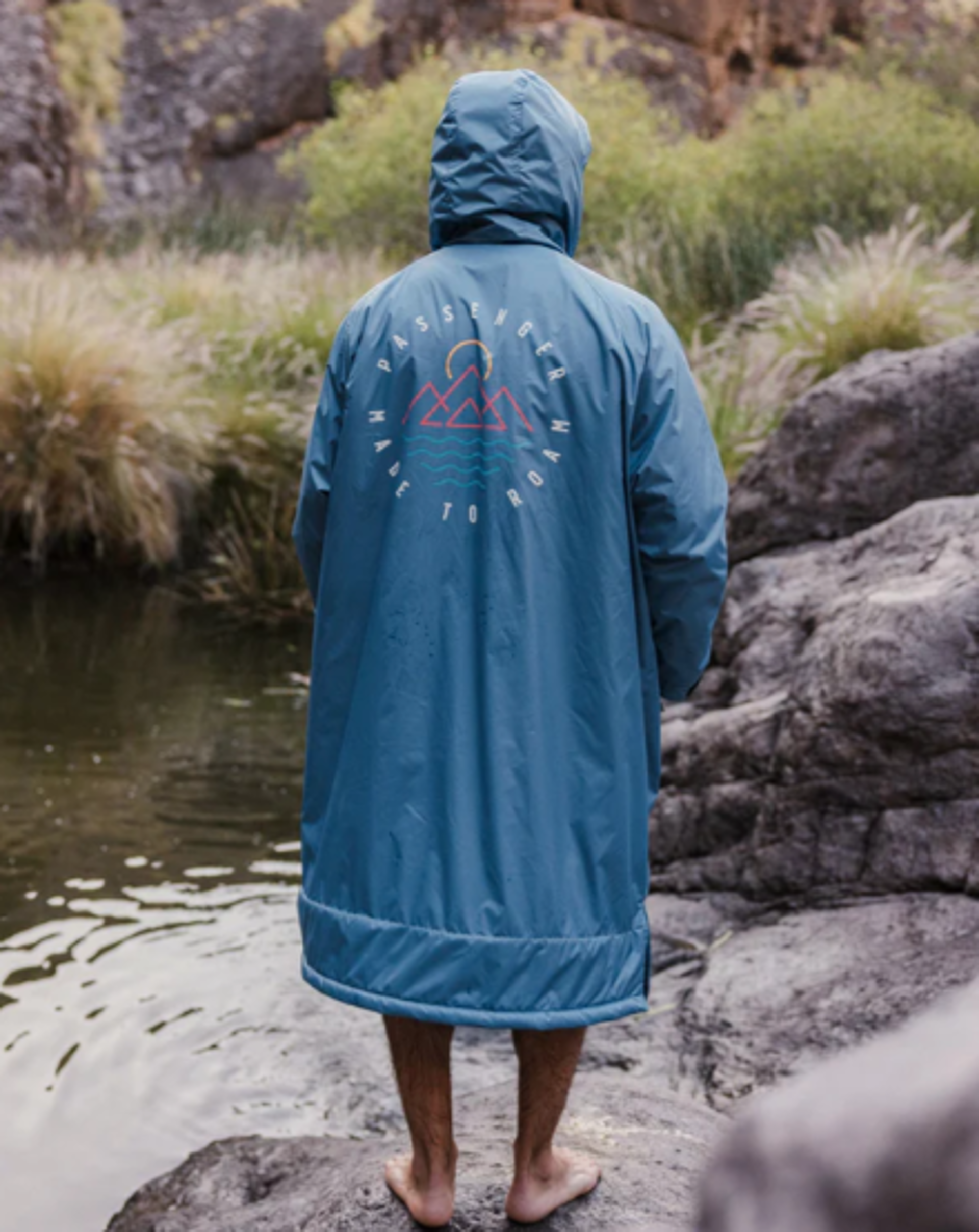 The Escapism is our changing robe with a super soft, cosy and snug sherpa fleece lining. Get changed anywhere in privacy and comfort, dry off, stay warm and keep the elements at bay. Built with 100% recycled single-use plastic bottles with a PFC-Free water resistant coating.
